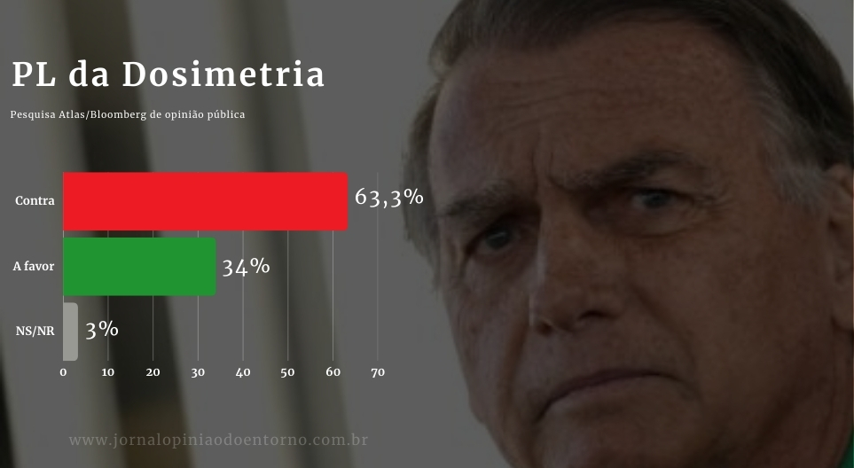 Aprovado pelo plenário do Senado Federal na noite de quarta-feira (17), o PL da Dosimetria é desaprovado por 63,3% da população, que se diz contra a proposta, de acordo com uma pesquisa AltasIntel/Bloomberg.