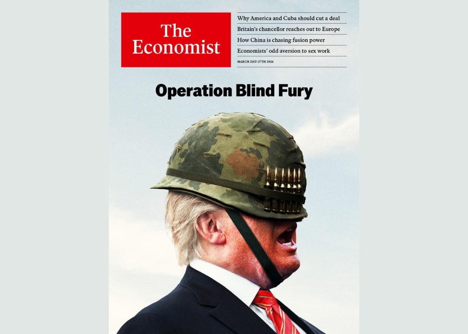A revista britânica The Economist ironizou a ação militar dos Estados Unidos e Israel contra o Irã na capa da sua edição desta semana.