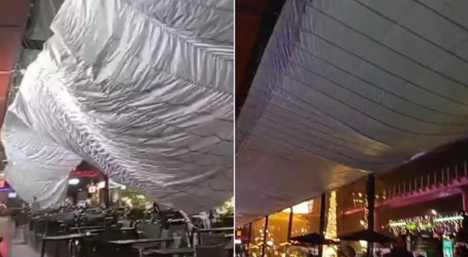 A cobertura improvisada do Shopping Singapura, em Caldas Novas, desabou após a forte chuva que atingiu a cidade logo após o jogo entre Vasco e Corinthians nesta quarta-feira (17). Apesar do susto não houve registro de feridos.
