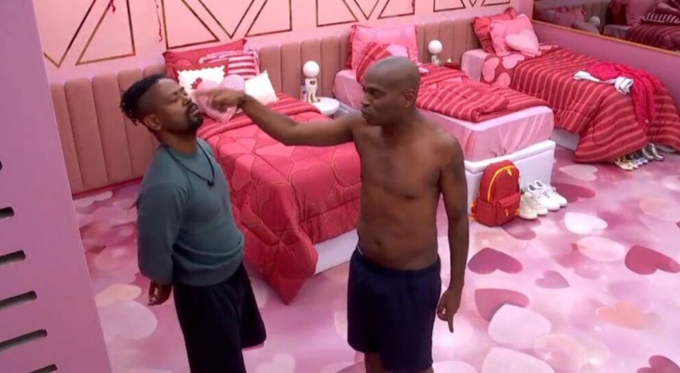 A confusão começou quando Leandro chegou ao Quarto Sonho do Grande Amor e acendeu a luz, no momento em que Edilson estava dormindo. “Vai tomar no seu c*”, disse Capetinha. "Você não sabe de onde eu venho, meu irmão", disse Leandro . "E você sabe de onde eu venho para falar aquilo que você falou? Você tomava pau...", rebateu o jogador, que logo empurrou o rosto de Boneco.