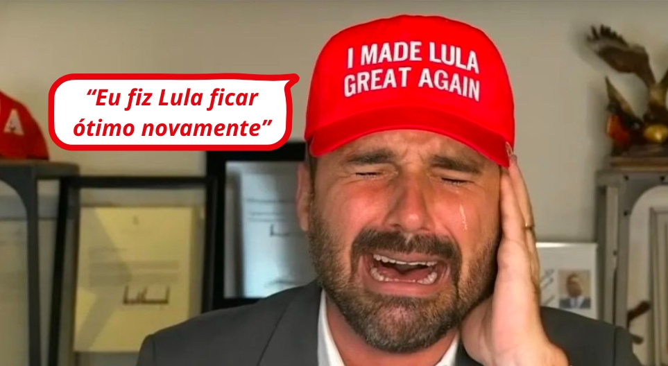 Nas redes sociais, viralizaram piadas, incluindo montagens de Eduardo Bolsonaro chorando e imagens dele usando um boné com a frase “I made Lula great again”, que significa “Eu fiz Lula ficar ótimo novamente”, em referência aos tradicionais bonés Trumpistas usados pela família Bolsonaro com o slogan “Make America Great Again”, que por sua vez significa “Tornar a América Grande Novamente”.