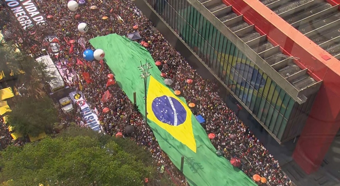 Em São Paulo, o ato aconteceu na Avenida Paulista, em frente ao MASP (Museu da Arte de São Paulo), onde uma grande bandeira do Brasil foi aberta, no mesmo lugar onde a duas semanas bolsonaristas exibiram uma grande bandeira também, só que dos Estados Unidos.