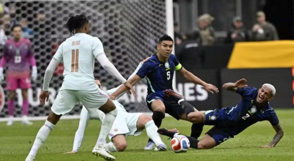 O Brasil foi derrotado pela França por 2 a 1 nesta quinta-feira (26), em duelo amistoso preparatório para a Copa do Mundo 2026, no Gilette Stadium, em Foxborough, nos Estados Unidos.