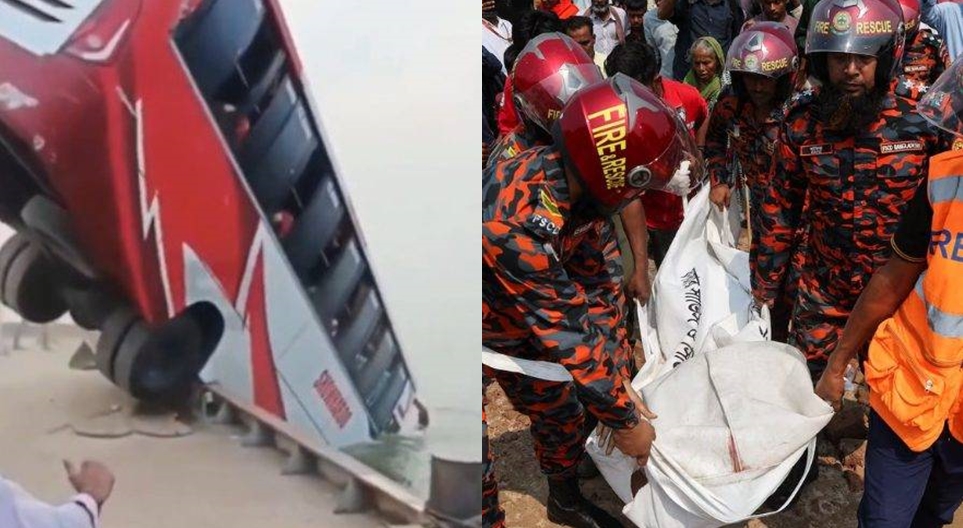 Um ônibus caiu no rio Padma enquanto tentava embarcar em uma balsa em Bangladesh, nesta quinta-feira (26). Ao menos 24 pessoas morreram no acidente, inclusive crianças, informaram as autoridades.