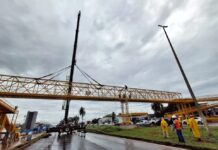 A principal ligação de pedestre entre um lado com o outro da cidade cortada pela Rodovia demorou quatro meses para ser remontada Após 124 dias, ou quatro meses de dificuldades para pedestres e motoristas, a passarela Amarela, que liga a Etapa A e o Jardim Oriente por cima da BR-040 foi, enfim, remontada nesta quinta-feira … Continue lendo Passarela atravessando a BR-040, em Valparaíso, é remontada após meses de transtornos para pedestres e motoristas