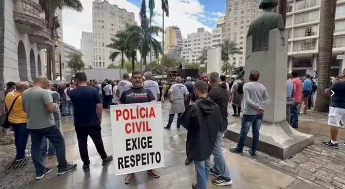 Durante o protesto, o delegado André Santos Pereira disse à TV Globo que uma reunião foi marcada com o governador Tarcísio de Freitas (Republicanos) na próxima segunda-feira (24).