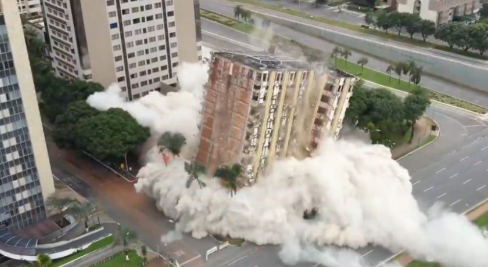 Foram utilizados cerca de 165 kg de explosivos para derrubar o prédio, um dos hotéis icônicos de Brasília.
