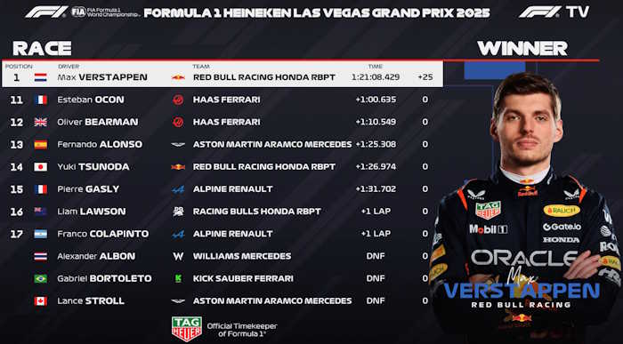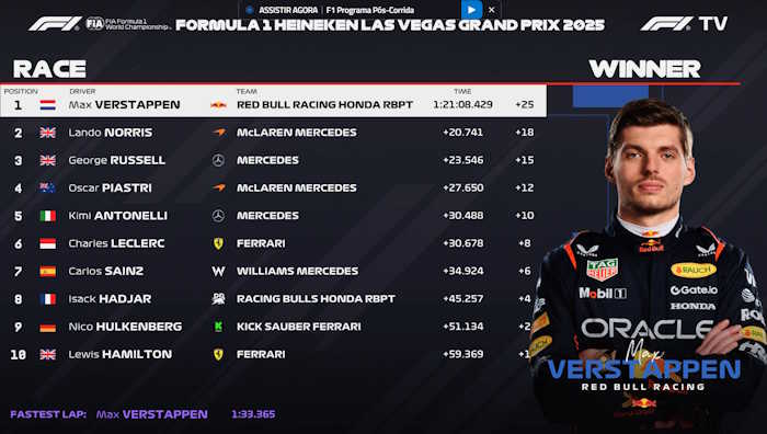 Confira o resultado final do GP de Las Vegas 2025 da Fórmula 1: